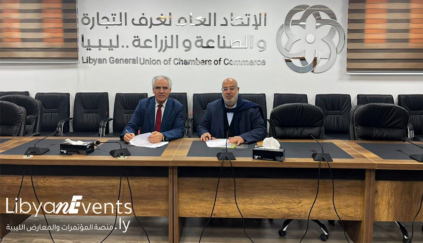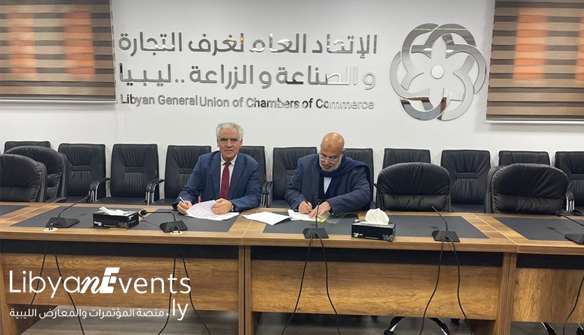 تم صباح اليوم الاحد الموافق 12/2/2023 بمقر الإتحاد العام لغرف التجارة والصناعة بطرابلس توقيع اتفاقية تعاون بين كلا من اتحاد غرف التجارة والصناعة والزراعة في ليبيا – المهندس محمد الرعيض رئيس مجلس الادارة وشركة موقع الاستثمار الليبي للتجارة الالكترونية المالك لمنصة المؤتمرات والمعارض الليبية Libyanevents.ly المهندس / محمد عطيه المنصوري – رئيس مجلس الإدارة في مجال التعاون لنشر جميع الفعليات الاقتصادية وكل ما يخص المؤتمرات والمعارض والملتقيات الاقتصادية وورش العمل والوفود في ليبيا التي يشرف او ينظمها الاتحاد على منصة المؤتمرات والمعارض الليبية LibyanEvents.ly