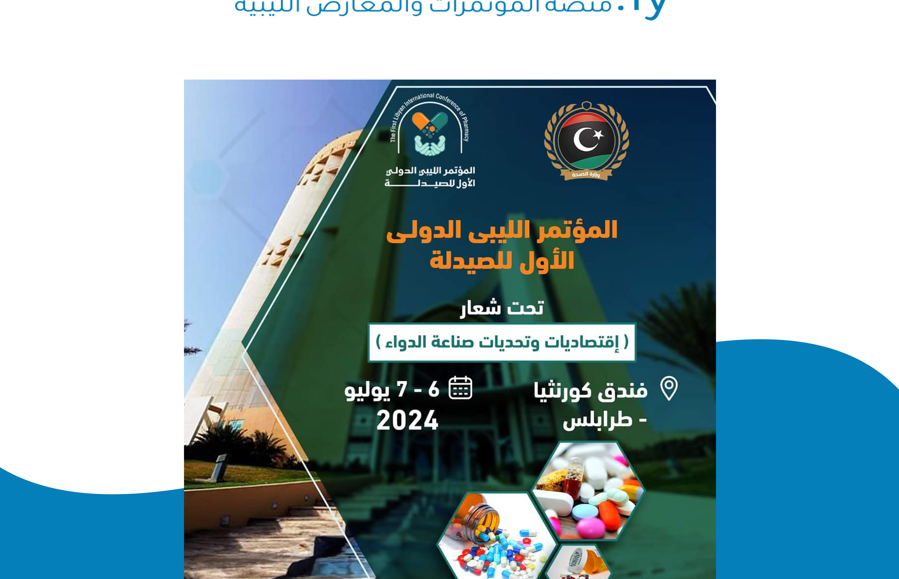 🌟تتشرف إدارة الصيدلة ومكتب المنسق العام للمعارض والمؤتمرات المحلية والدولية بوزارة الصحة 👈🏻بالدعوة للمشاركة في المؤتمر الليبي الدولي الأول للصيدلة. —————————- 👈🏻الذي سيعقد : ⏰في الفترة ما بين 6-7 يوليو 2024 📍في فندق كورنثيا بمدينة طرابلس. ✨يهدف المؤتمر لتعزيز التعاون...