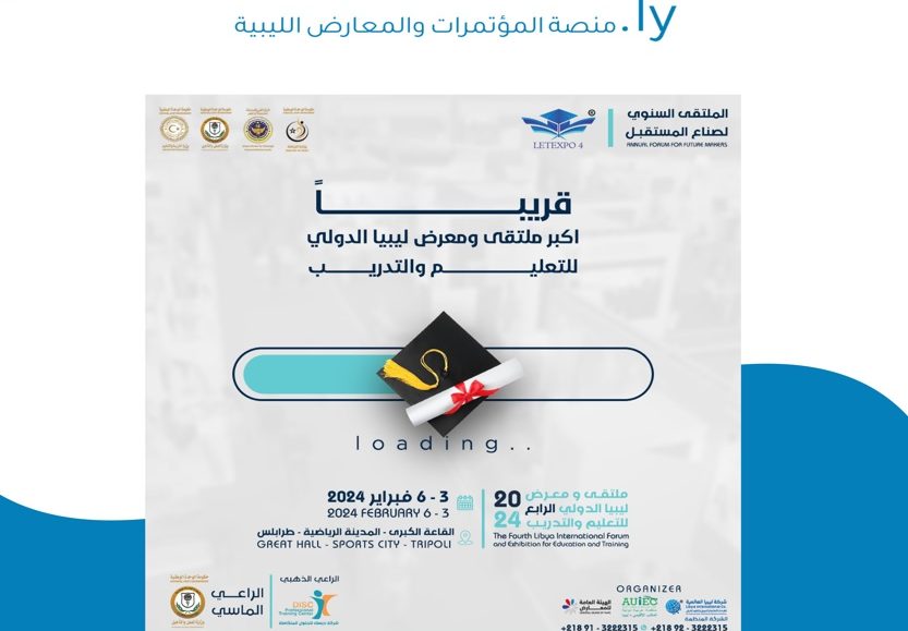 ملتقى ومعرض ليبيا الدولي الرابع للتعليم والتدريب (الملتقى السنوي لصُنّاع المستقل 2024 ) .. الأهم في شمال أفريقيا في مجال التعليم والتدريب. LETEXPO خلال الفترة من : 3-6 فبراير 2024 المدينة الرياضية طرابلس يحتضن في أروقته صفوة المؤسسات التعليمية...
