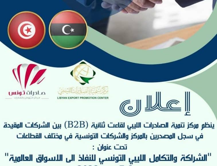 The Libyan Export Development Center organizes bilateral meetings (B2B) between companies registered in the Center’s exporters register and Tunisian companies in various sectors under the title “Libyan-Tunisian Partnership and Integration to Access Global Markets”.