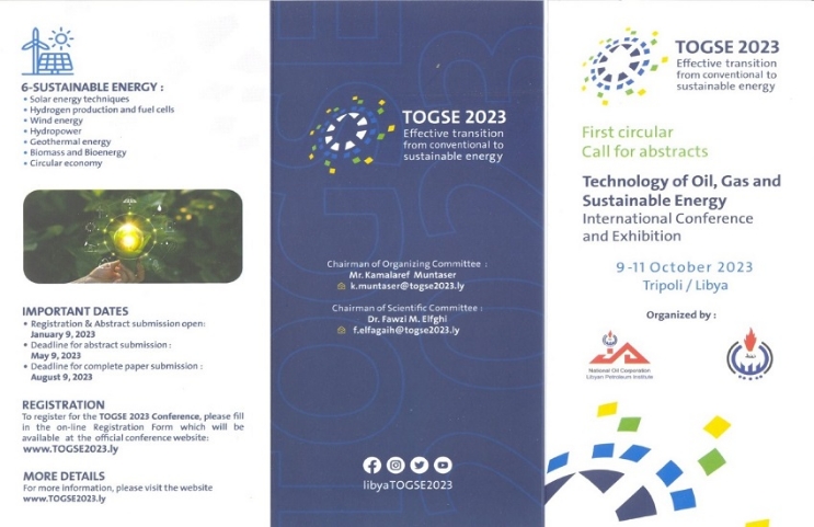 The Libyan Petroleum Institute, with the support of the National Oil Corporation, intends to organize the International Conference and Exhibition for “Technology of Oil, Gas and Sustainable Energy” under the theme of “Towards an Effective Transition from Conventional to Sustainable...
