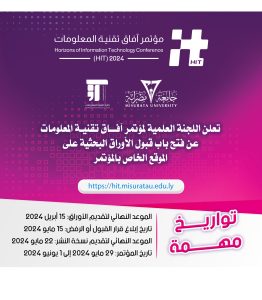 سيتم في مؤتمر آفاق تقنية المعلومات مناقشة أحدث التطورات والتحديات في مجال تكنولوجيا المعلومات وتأثيرها على ليبيا وخارجها. وستغطي موضوعات المؤتمر كذلك مجموعة واسعة من المجالات