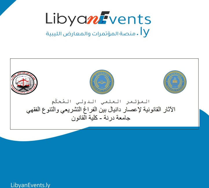 كلية القانون جامعة درنة، تقيم مؤتمرها العملي الدولي الأول بعنوان: الآثار القانونية لإعصار دانيال، بين الفراغ التشريعي والتنوع الفقهي، وذلك بداية من اليوم الأول والثاني من مايو القادم.