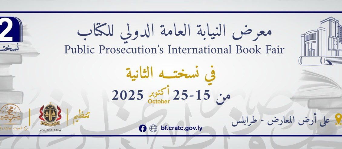 مركز البحوث الجنائية و التدريب، برعاية مكتب النائب العام – دولة ليبيا ، ينظم النسخة الثانية من معرضه الدولي للكتاب، خلال المدة من: 15 حتى 2025.10.25