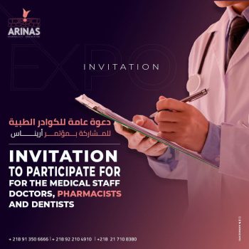 Through Arinas Conference and Exhibition, we aim to be the permanent platform for promoting the latest scientific and practical developments, by providing the appropriate medical environment for the exchange of experiences and information. Where this event was organized by a group of specialists to be the link between the most important and largest institutions that work in everything related to the medical and cosmetic aspect, and the most prominent doctors entered and outside Libya to achieve the highest standards of benefit among all and to create the beneficial international cooperation through which we seek the desired progress for the State of Libya.