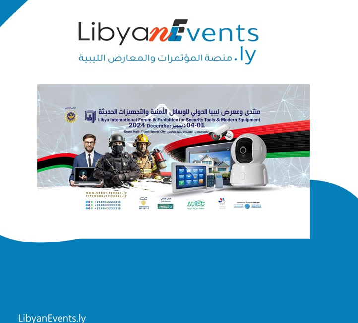 منتدى ومعرض ليبيا الدولى للوسائل الامنية والتجهيزات الحديثة يقام خلال الفترة من 1 إلى 4 ديسمبر 2024 بالقاعة الكبرى – المدينة الرياضية طرابلس