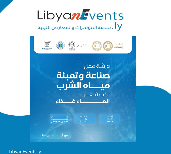 بمناسبة (اليوم العالمي للغذاء) الموافق 16 أكتوبر 2024، ستنظم هيئة النهوض بالصناعة الوطنية بالتعاون مع المركز الوطني للمواصفات والمعايير القياسية ومنظمة الرقيب الليبية لحماية المستهلك ورشة عمل تحت عنوان “الماء غذاء”.