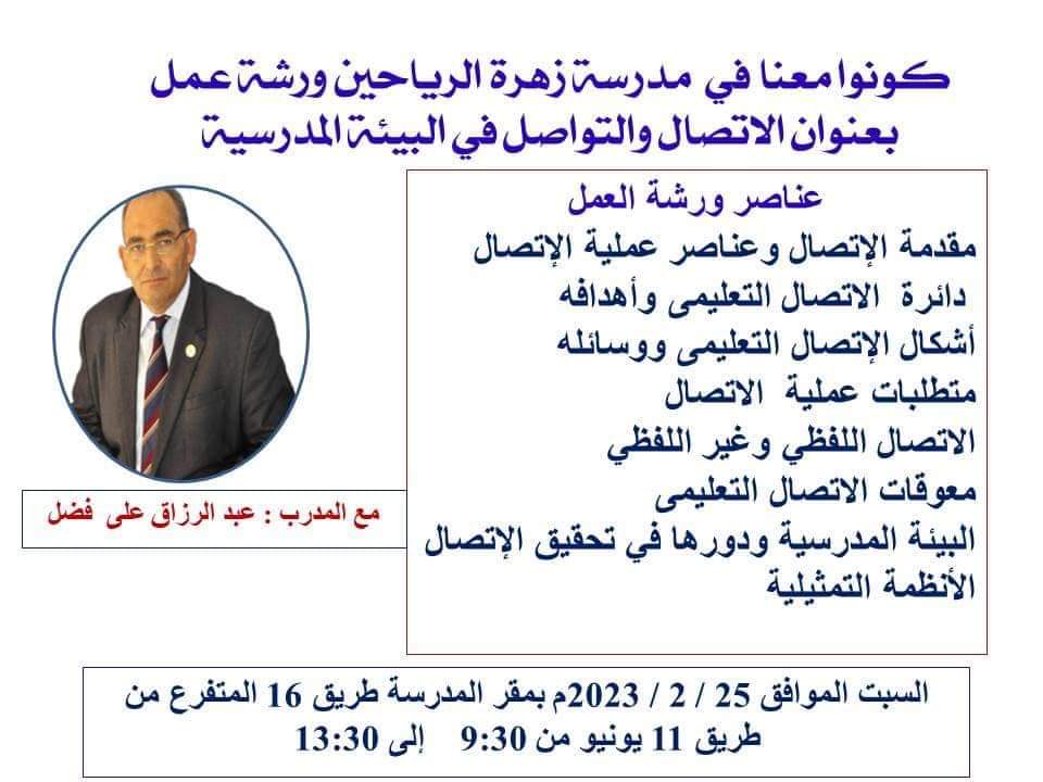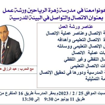 A workshop entitled Communication and communication in the school environment ورشة عمل بعنوان الاتصال والتواصل في البيئة المدرسية