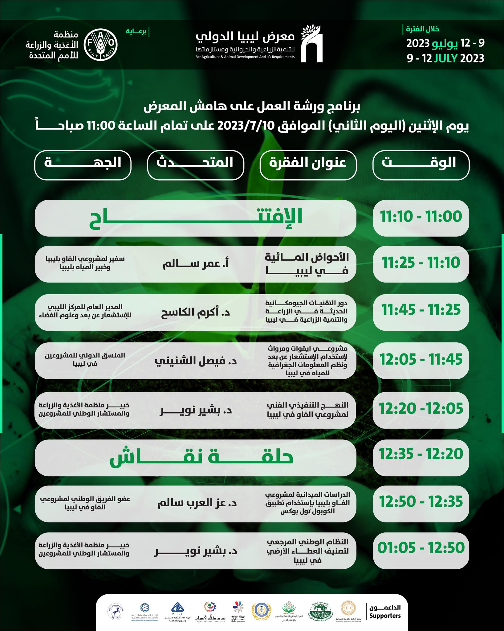 Among the activities of the Libya International Exhibition for Agricultural and Animal Development, its requirements, and workshops sponsored by the Food and Agriculture Organization (FAO) and in cooperation with the Ministry of Agriculture and Livestock.