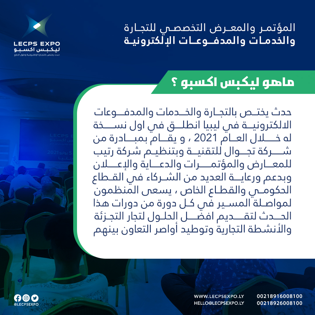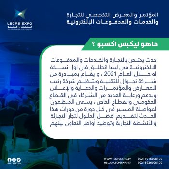 It is an exhibition that is held for the first time by a roaming company for information technology, organized by the most important exhibition organizing companies, and the support, sponsorship and participation of many public and private entities, with the presence of exhibitors and sponsors to work on finding a link between service providers that serve the march of the e-commerce sector and payment solutions.
