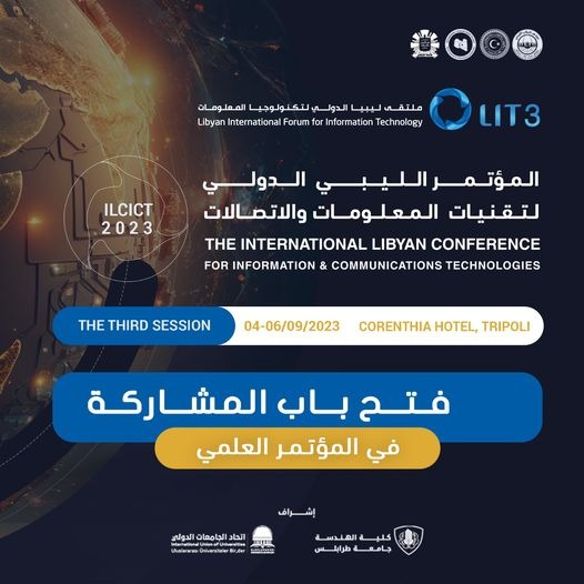 The second International Libyan Conference for Information and Communications Technologies (ILCICT 2023) will be held in the warm and wonderful city of Tripoli, Libya, from 4 to 6 September 2023. Themed “Accelerating the Digital Transformation through Smart Communications,” this flagship conference of the Libyan Telecommunication and Information Technology Society will feature a comprehensive high-quality technical program including tutorials and workshops. ILCICT 2023 will also include an attractive Industry program, with keynotes and panels from prominent research, industry and government leaders, business and industry panels, and vendor exhibits.