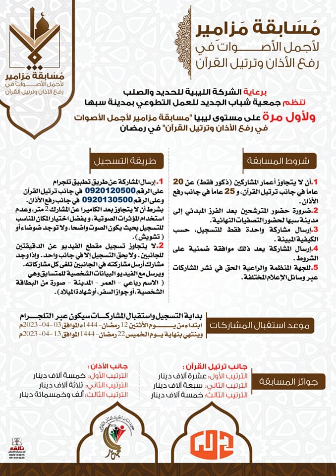 Mazamer competition for the most beautiful voices in raising the call to prayer and reciting the Qur’an مسابقة مزامير لأجمل الأصوات في رفع الأذان وترتيل القرآن
