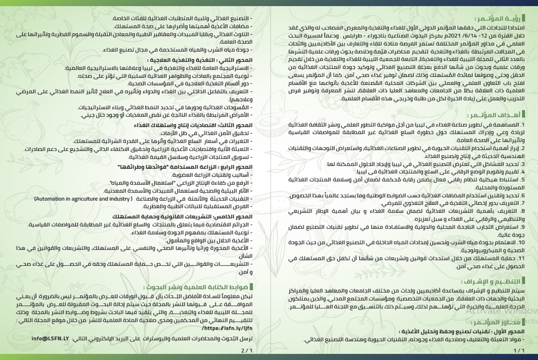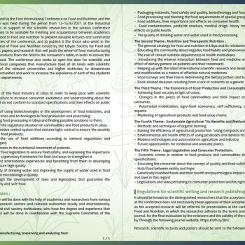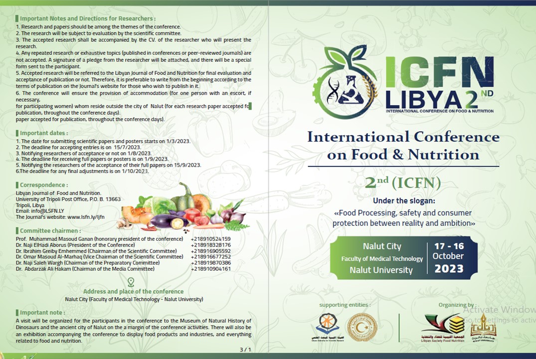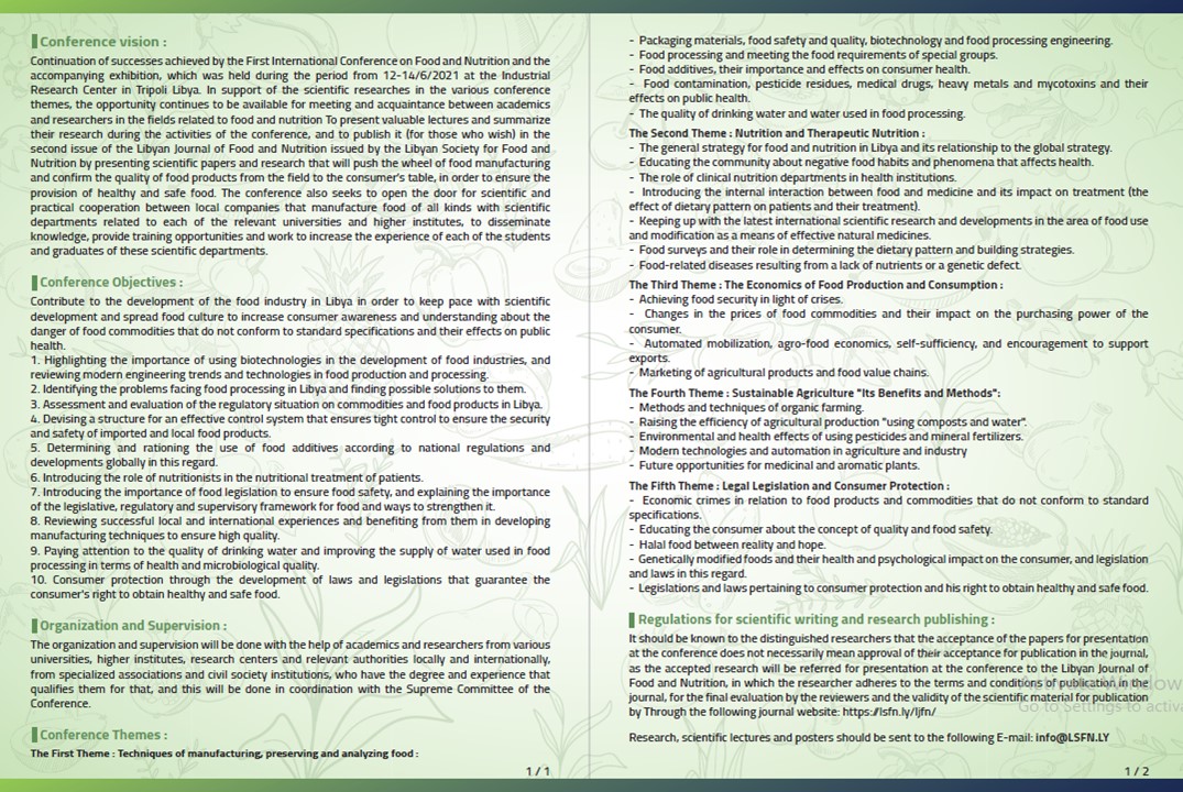 Second International Conference on Food and Nutrition المؤتمر الدولي الثاني للغذاء والتغذية