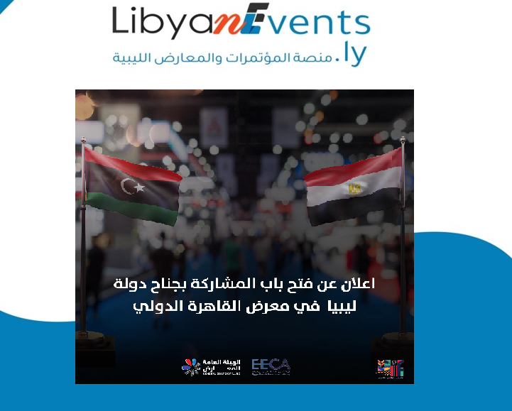 اعلان عن فتح باب المشاركة بجناح دولة ليبيا في معرض القاهرة الدولي. تدعو الهيئة العامة للمعارض جميع القطاعات الوطنية، من مؤسسات وشركات ومصارف، للمشاركة في الدورة الـ57 لمعرض القاهرة الدولي، المقرر عقدة خلال الفترة من 29 فبراير إلى 9 مارس...