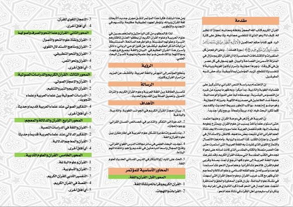 The First International Conference (The Holy Quran: An Explanation of Arabic in its Fullest Phase) المؤتمر الدولي الأول – القرآن الكريم: بيان العربية في أكمل أطوارها