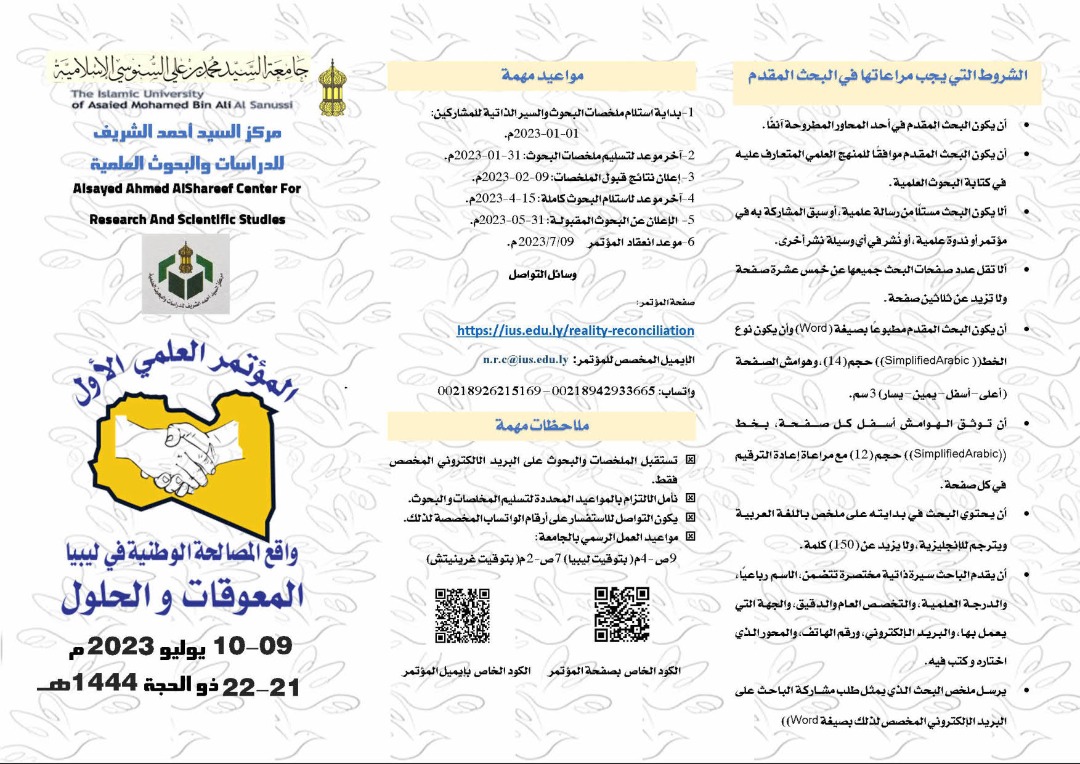 The first scientific conference entitled The Reality of National Reconciliation in Libya: Obstacles and Solutions المؤتمر العلمي الأول بعنوان واقع المصالحة الوطنية في ليبيا المعوقات والحلول