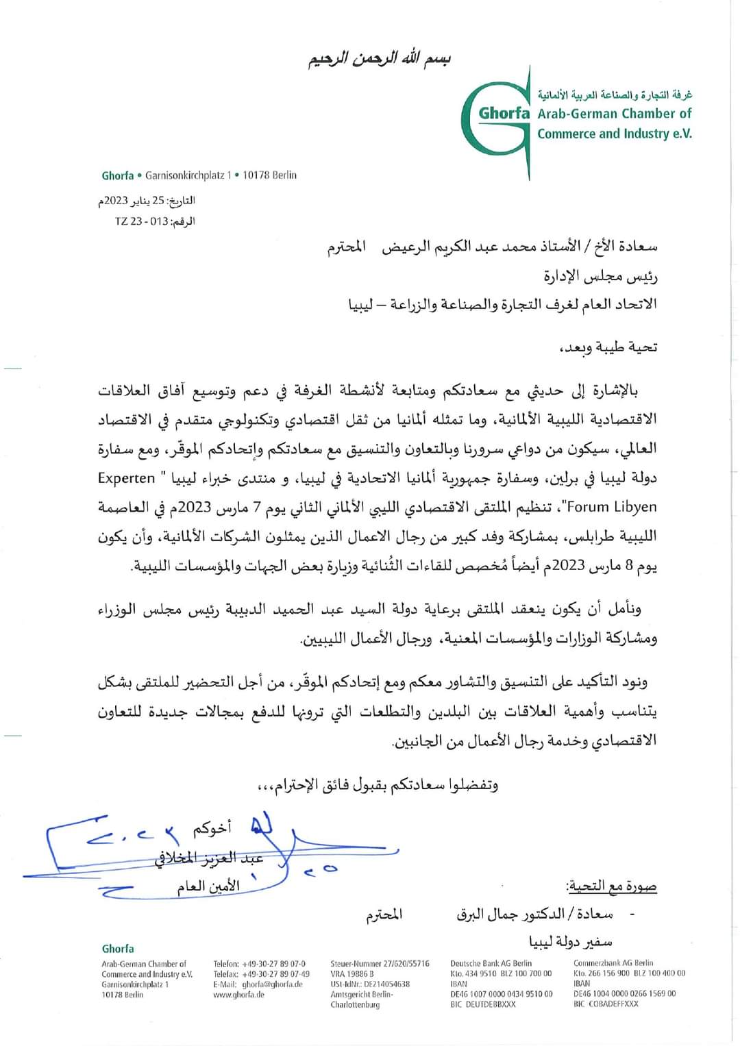 The Second Libyan-German Economic Forum will be held on 7 March in Tripoli, the Ministry of Economy and Trade and the Arab-German Chamber of Commerce and Industry revealed.