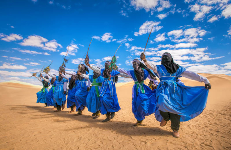 Meet our team of camel drivers. Walk around the high dunes of Erg Ubari. Magnificent landscape. Do not miss the sunset on the vast dunes. Majestic spectacle.