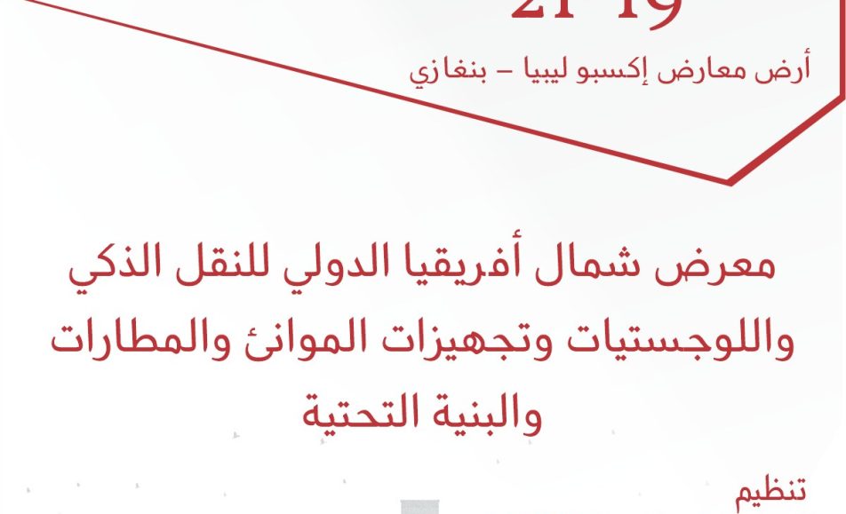 معرض شمال أفريقيا الدولي للنقل الذكي واللوجستيات وتجهيزات الموانئ والمطارات والبنية التحتية 19 – 21 يناير 2026 أرض معارض إكسبو ليبيا – بنغازي بمشاركة دولية كبرى وحضور يفوق 10,000 زائر متخصص، يشكّل المعرض منصة مثالية للشركات العارضة لفتح أسواق جديدة...